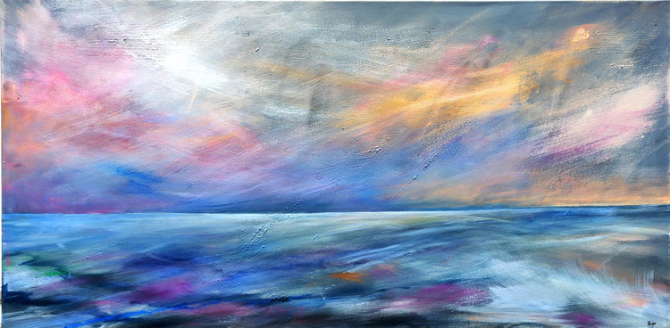 Based in Whitby, Zoe is a contemporary seascape artist, inspired by the connection between the sea and the sky. The drama and the subtlety of nature fascinate her and are what she largely focuses on when out sketching and painting on the beach.